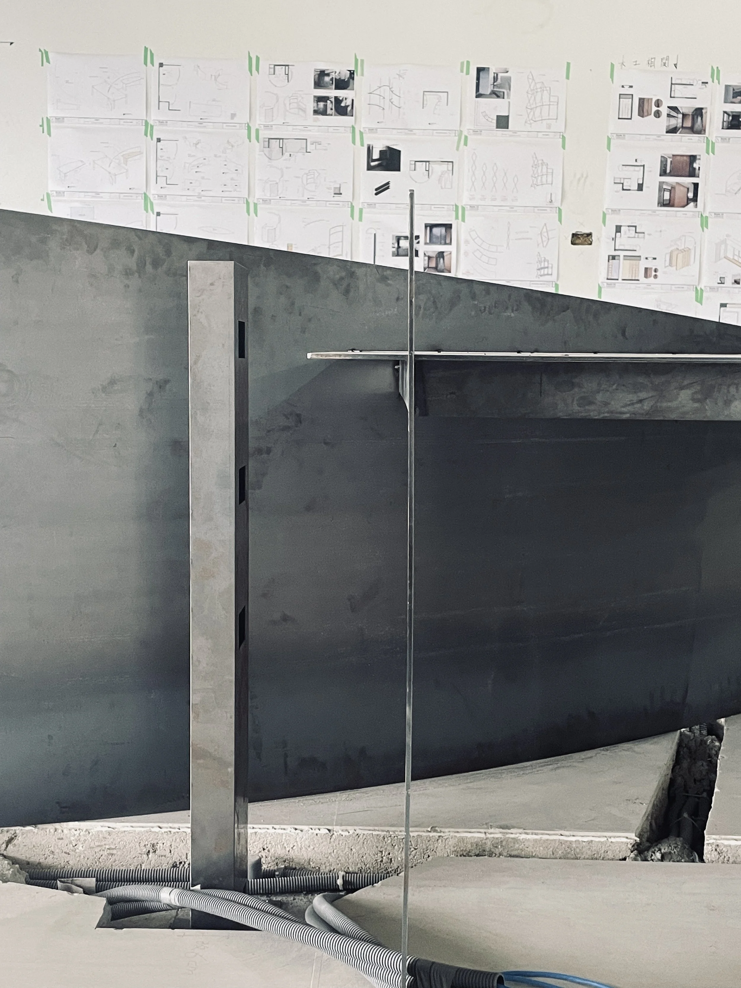 低檯與隔間相遇的細部