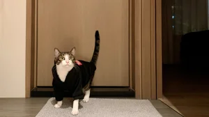 During the makeover and reconstruction, a slim open hanging shelving, forged by stainless wires and plates, was recessed in the massive brick wall. The wall maintains its original surface intact, presenting the roughness and coarse tactile feelings of the brick materiality. The combination between stainless modernity and old masonry carries out an artful contrast without losing the charm of apartment agedness.